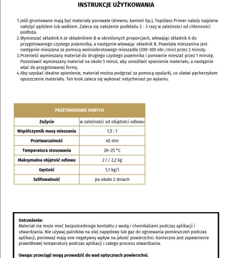 TopGlass 10 to żywica odlewnicza przeznaczona do odlewania przedmiotów dekoracyjnych (powierzchni).