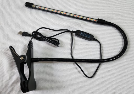 - Jednogłowicowa lampa Grow USB z klipsem mocującym i pilotem na kablu.