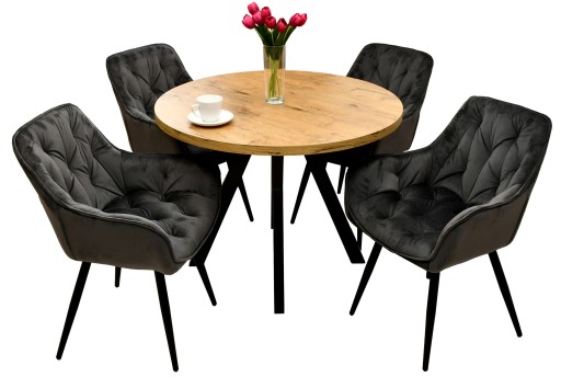 круглый стол с 4 стульями, мебель лофт