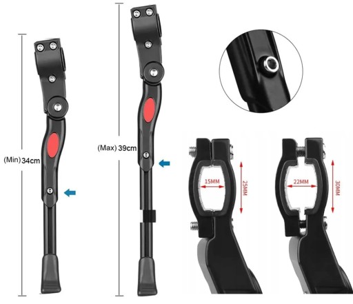Nóżka pasuje do wielu modelów roweru, w zakresie 24-29". Możesz dopasować jej wysokość dokręcając śrubę w odpowiednim miejscu. Produkt można również regulować pod względem szerokości górnego uchwytu, maksymalna szerokość ramy to aż 2,5cm.