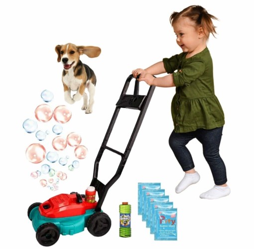 Kosiarka bąbelkowa dla dzieci. Zestaw zabawek ze światłem i muzyką. Zestaw narzędzi ogrodniczych na przyjęcia dla maluchów i dzieci Do budowy kosiarki użyto wysokiej jakości, trwałych materiałów. Instalacja płynu (w zestawie) i włączenie zasilania jednym przyciskiem powoduje, że jest łatwy w użyciu i transporcie. Nadaje się zarówno do domu jak i na zewnątrz.
