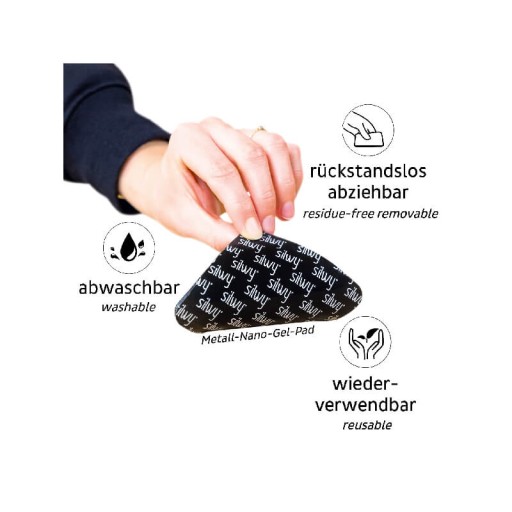 Dzięki inteligentnej powłoce żelowej, podkładki można zamontować na prawie wszystkich powierzchniach, są wielokrotnego użytku i można je myć.