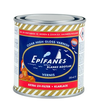 Epifanes to holenderska firma, która od 1902 roku wyznacza najwyższe standardy jakości farb do malowania łodzi i jachtów. Farby i lakiery jachtowe są jedynym wykończeniem, od których wymaga się by były zarówno pięknie jak i wytrzymałe, a do tego odporne na działanie nieprzyjaznego środowiska. Poprzez stosowanie najnowszych technologii i użycie składników o najwyższej jakości, Epifanes tworzy produkty, które nie tylko są w stanie sprostać tym wymaganiom, a nawet je przewyższają. Jednoskładnikowy, bezbarwny lakier o wysokim połysku i płynności. Skomponowany na bazie oleju z drzewa tungowego (lakier chiński) oraz żywic alkilowych i fenolowych.