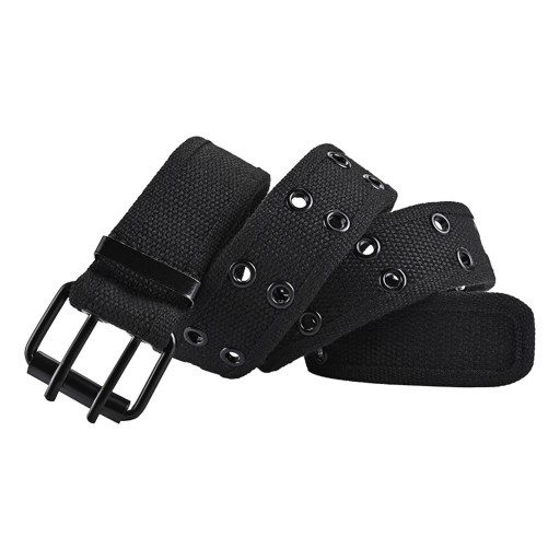 Pasek z podwójnymi przelotkami Estetyczny, swobodny pasek z klamrą Punkowe paski Pas płócienny 110cm Czarny