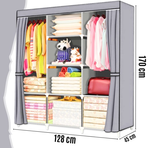 Lekka, składana i duża szafa tekstylna to idealny zamiennik dla tradycyjnych mebli. Może pełnić role półki bądź całej garderoby, możesz ją zagospodarować wedle Swoich upodobań!