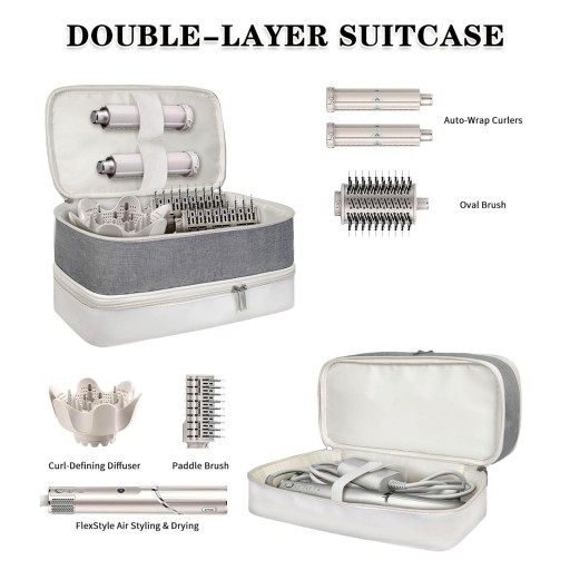 [Podwójna warstwa] Ta walizka z suszarką do włosów ma dwuwarstwową konstrukcję o dużej pojemności, aby uniknąć zadrapań. Podwójny zamek błyskawiczny otwiera się w obu kierunkach, co zapewnia wygodne i szybkie przechowywanie.
