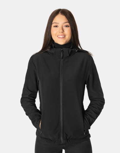 Softshell na zewnątrz posiada wykończenie typu Water Repellency, który zapobiega nasączeniu warstwy zewnętrznej wodą. Wewnętrzna strona kurtki utrzymująca ciepło to polarowa podszewka. Kurtka jest wodoodporna, oddychająca i zapinana w całości na zamek błyskawiczny. Praktyczny odpinany na zamek błyskawiczny i ocieplony polarową podszewką kaptur posiada możliwość połączenia go z za pomocą rzep z kołnierzem oraz regulacji jego wielkości i dopasowania 2D za pomocą ściągacza i stoperów. Skutecznie osłoni Twoją głowę przed deszczem, wiatrem i chłodem. Wysoki kołnierz/stójka chroni podbródek i szyję a często zastępuje nawet szalik co jest bardzo wygodne. Kurtka posiada dwie przednie kieszenie na dłonie zasuwane na zamki błyskawiczne oraz dwie kieszenie wewnętrzne z technicznej siateczki. Taśma regulacyjna ze stoperami przy kapturze a także ściągaczowe mankiety pozwalają na precyzyjne dopasowanie do ciała, co znacznie zapobiega utracie ciepła i skutecznie chroni przed podmuchami wiatru. Wewnętrzna strona kurtki jest lekko ocieplona przyjazną dla ciała polarową podszewką. Talia zgrabnie podkreślona doskonale wyprofilowana konstrukcja. Modny sportowy krój efektownie podkreślający kobiecą sylwetkę prezentowany obecnie szeroko na modowych blogach.