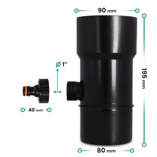 Odzyskiwacz wody deszczowej 90 mm x 1'' GZ czarny z przyłączem pod szybkozłączke 1'' GW x SZ