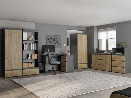 ZESTAW MEBLI DZIECIĘCYCH MŁODZIEŻOWYCH Z BIURKIEM NEO 02 ANTRACYT-DĄB CRAFT