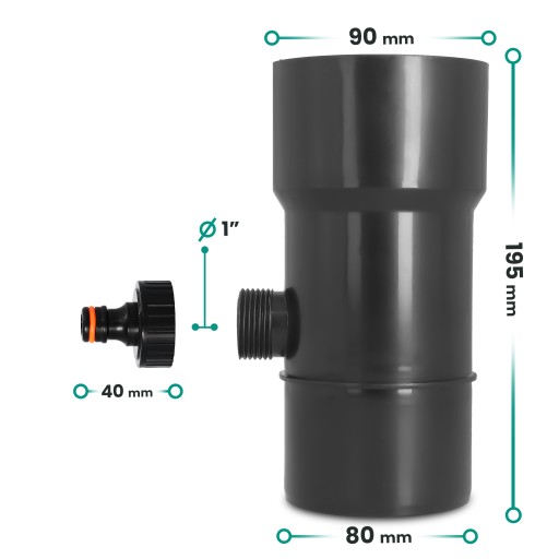 Odzyskiwacz wody deszczowej 90 mm x 1'' GZ grafit z przyłączem pod szybkozłączke 1'' GW x SZ
