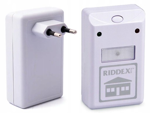 Odstraszacz RIDDEX PLUS to efektywny sposób usuwania myszy, szczurów, karaluchów, pcheł, much, komarów, świerszczy, ciem, moli, mrówek i innego powszechnie występującego robactwa. Oznaczenie "PLUS" informuje, że jest to ulepszona wersja poprzedniego bardzo popularnego modelu RIDDEX. Ulepszony model jest bardziej wydajny i działa na większej powierzchni.