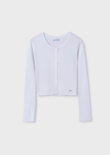 Sweterek z długim rękawem dla dziewczyny. Okrągły dekolt. Model o długości do bioder. Zapięcie z przodu na guziki. Trykotowa dzianina, delikatna i przyjemna w dotyku. Model gładki. Skład: 100% Wiskoza