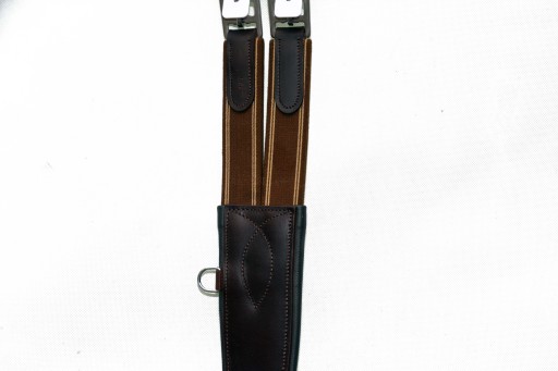 Popręg skórzany Anatomiczny z gumami 115cm.Popręg wyprodukowane w zakładzie Rymarskim w Anglii.Wykonane z najwyższej jakości skóry bydlęcej bardzo miękkiej i miłej w dotyku ,w część tylna podszyta na miękko ,aby zapobiec obtarciom .Popręg zapinany i regulowany jest na stabilne sprzączki , wykonane z bardzo dobrej nierdzewnej stali szlachetnej . Zapraszam do zakupu. Kolor brązowy . Uwaga popręg mierzony od sprzączki do sprzączki.