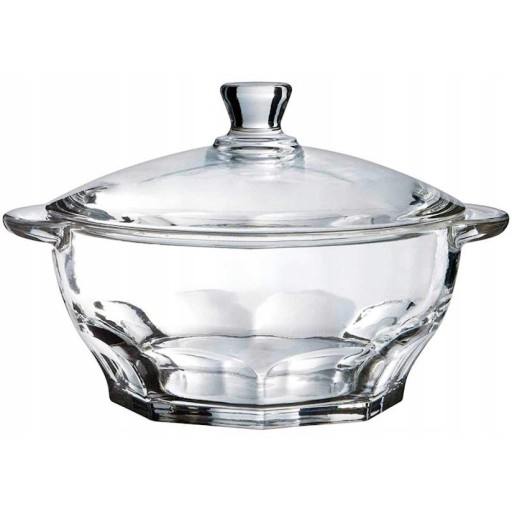 MISA z pokrywą - WAZA wykonana jest ze szkła sodowego przeźroczystego o dużej odporności na temperaturę, wstrząsy i uderzenia. Naczynie Granity może pełnić rolę wazy na zupę, miski z pokrywą na sałatę i inne potrawy - może służyć do przechowywania powyższych w lodówce.
