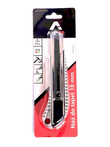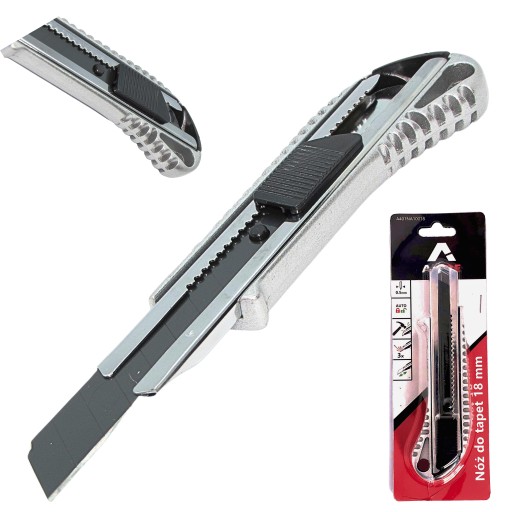 Nóż do zastosowań profesjonalnych i amatorskich przeznaczony do cięcia tapet, papieru, tkanin, folii, taśm , wykładzin itp. Tego typu nożyk powinien znaleźć się na wyposażeniu każdego magazyniera oraz być na każdym domowym warsztacie. Aby zapewnić idealną ostrość ostrze składa się z 8 segmentów, które należy odłamać w przypadku gdy jakość cięcia znacząco spadnie. Dzięki grubości ostrza 0,5 mm ostrze nie wyłamuje się szybko co zapewnia stabilonść pracy. Nożyk posiada także blokadę, aby zapewnić cięcie bez efektu przesuwania się ostrza.