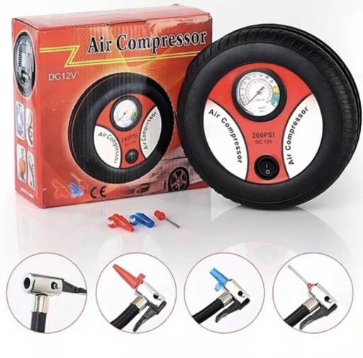 - wysokiej jakości kompresor zapewnia szybkie i łatwe pompowanie opon samochodów, motocykli, rowerów, motorowerów, piłek, zabawek