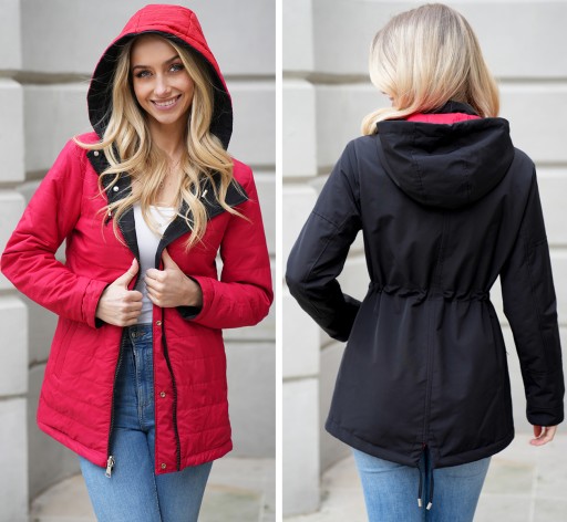 DWUSTRONNA TALIOWANA WIOSENNA Kurtka PARKA Kaptur 3 KOLORY Przejściowa XXL