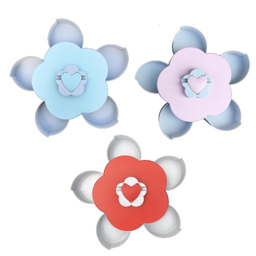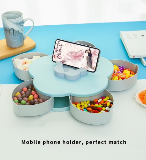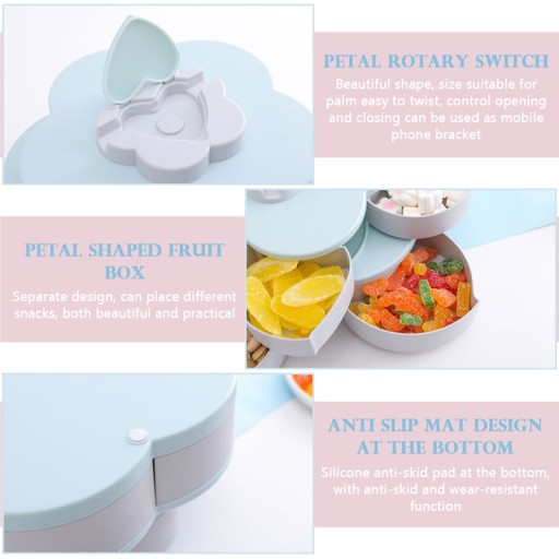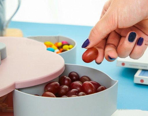 Obrotowy pojemnik w kształcie płatka, idealnie nadaje się do przechowywania różnego typu przekąsek. Posiada jedną warstwę przechowywania. Wykonany jest z mocnych i trwałych materiałów, które są nietoksyczne i przyjazne dla środowiska.