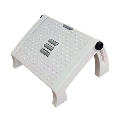 Regulowany podnóżek pod biurkiem z powierzchnią masującą stopy i poduszką pod nogi biały