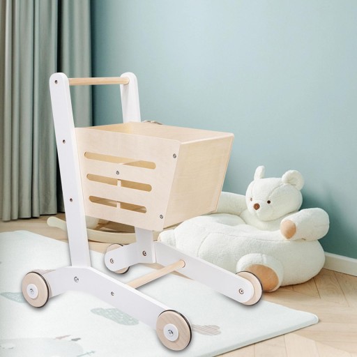 [Materiał] Zabawka do wózka na zakupy wykonana jest z litego drewnianego materiału, który jest trwały i stabilny.