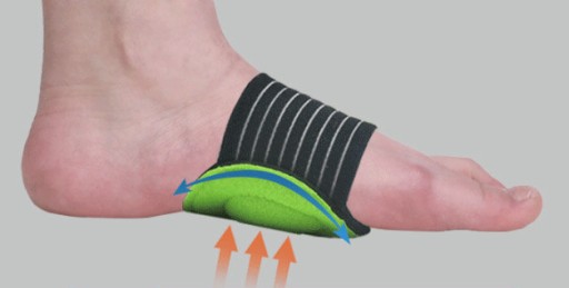 Opaska podpiera sklepienie wzdłużne stopy, usuwając w ten sposób ból i dyskmfort.