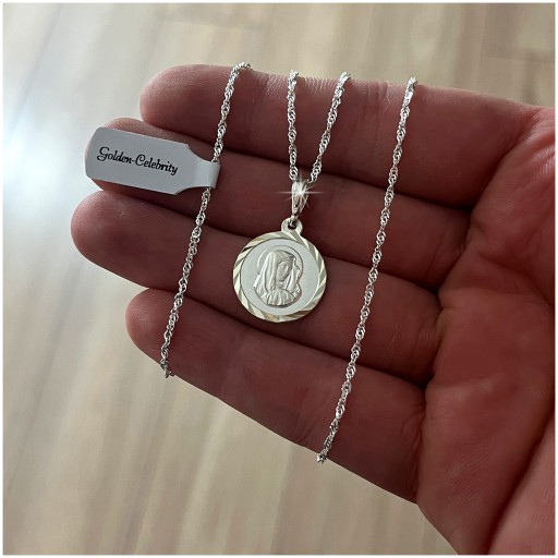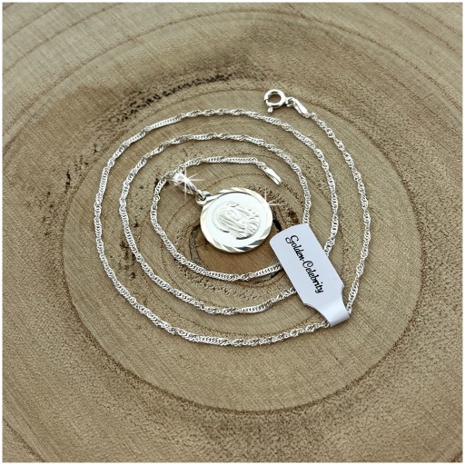 SREBRNY ŁAŃCUSZEK SINGAPUR + MEDALIK PASYJKA 925 MATKA BOSKA MADONNA GRAWER Marka Golden Celebrity