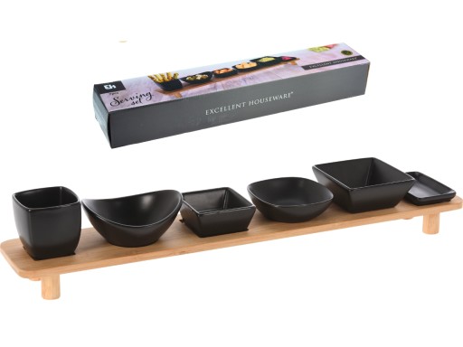 Миски для закусок КЕРАМИЧЕСКИЕ черные, 6 шт. - на подносе БАМБУК