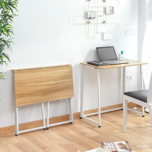 Oryginalne biurko o nowoczesnej i składanej konstrukcji, oferujące wiele korzyści i możliwości, gdyż łatwo się dopasowuje do wielu zastosowań i przestrzeni. Można go w prosty sposób rozłożyć oraz złożyć i wygodnie przenieść w dowolne miejsce, w którym będzie używane lub przechowywane, zajmując przy tym niewiele miejsca (pod łóżkiem, za drzwiami, za meblami, za zasłonami, itp.) Pozwala utrzymać porządek i zaoszczędzić miejsce, gdyż dzięki rozkładanej konstrukcji można go ustawić tylko wtedy, gdy ma być używany. To przenośne i wielofunkcyjne biurko jest uniwersalne, może być używane w sypialni, salonie, gabinecie czy biurze, itp. Idealne do pracy zdalnej bądź jako stolik pomocniczy do innych zastosowań. Nie wymaga montażu i posiada regulowane nóżki zapewniające całkowite i stabilne oparcie. Maksymalne obciążenie biurka wynosi 50 kg. Produkt jest wytrzymały, lekki i łatwy w użyciu oraz czyszczeniu.