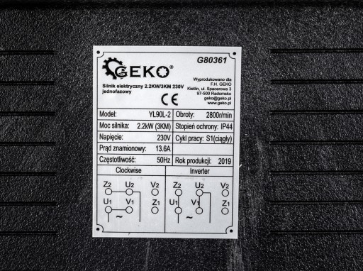 Silnik elektryczny 2.2KW/3KM 230V 1 fazowy GEKO G80361