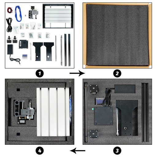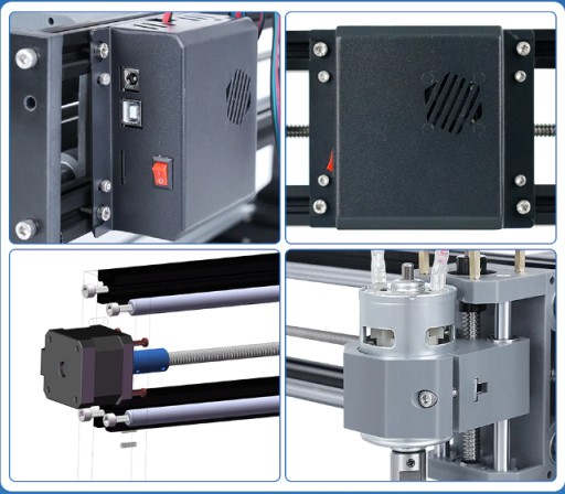 Główne części frezarki CNC są wstępnie zmontowane, a pełny montaż trwa około 15-30 minut. Podstawa jest wstępnie zmontowana, a okablowanie jest wyraźnie oznaczone, co ułatwia instalację (film z montażem i użytkowaniem oraz instrukcja w języku angielskim, która znajduje się na stronie produktu). Łatwa instalacja, wystarczy użyć wyobraźni i kreatywności, aby wygrać i wybrać alternatywne opcje.