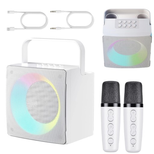 🎶【Potężny dźwięk stereo】 Kompaktowy zestaw do karaoke dla dorosłych wyposażony jest w głośniki o wysokiej jakości, mocy 10 W i bardzo niskiej częstotliwości. Oferuje wybuchowy i wysokiej jakości dźwięk. Będziesz cieszyć się efektem dźwięku przestrzennego stereo 360°