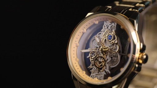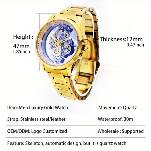 Горячие модные модные оптовые мужские автоматические часы с золотым скелетоном