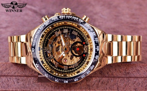 Механические спортивные часы Winner с безелем, часы-скелетон,