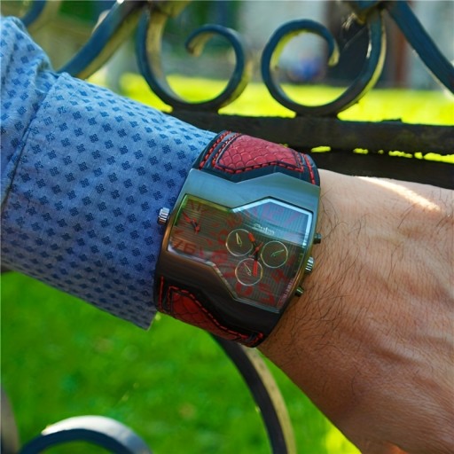 Часы Oulm в классическом стиле с двумя часовыми поясами, мужские часы из искусственной кожи