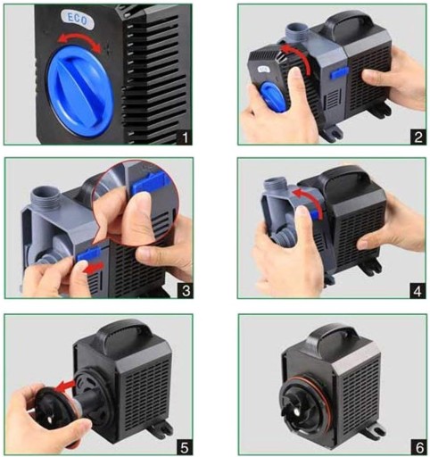 Wyłącz zasilanie, a następnie wyjmij korpus pompy bezpośrednio ze stawu, nie ciągnij za kabel zasilający pompy.