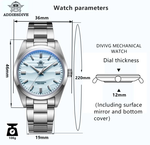 Zegarek męski ADDIESDIVE z tarczą piaskową 36mm zegarek kwarcowy 100m wodo