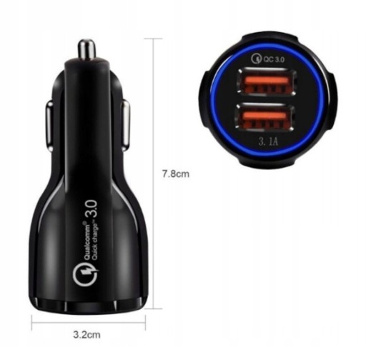 Bardzo wydajna ładowarka samochodowa z 2 wyjściami USB w tym jedno z technologią FAST CHARGE zgodnej z QUALCOMM 3.0. Niezbędna do ładowania nowoczesnych urządzeń z szybkim ładowaniem.