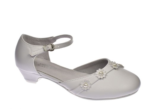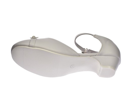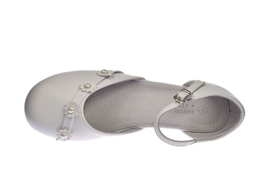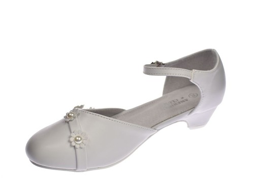 Buty komunijne białe balerinki dziewczęce białe na obcasie zapinane na pasek marki American Club