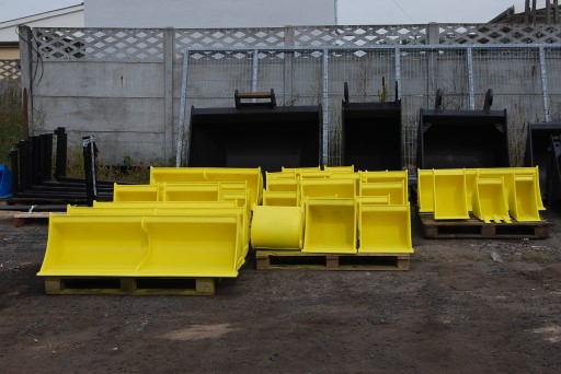 - W łyżkach skarpowych istnieje możliwość wzmocnienia, zamocowania dodatkowego lemiesza tylnego oraz ukosowania hudraulicznego.
