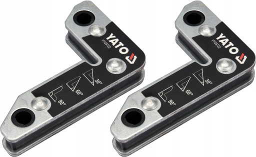 Zestaw 2 magnetycznych kątowników YT-08722 stosowanych przy pracach spawalniczych i montażu pod kątem różnych elementów: blach, łączników, płaskowników, profili, rur etc. Zapewniają bezpieczne trzymanie spawanych elementów dzięki mocnym magnesom.