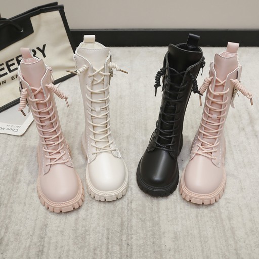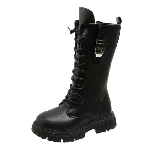 Dziewcz?ce kozaki ze sztucznego futra, pó?d?ugie, zimowe kozaki motocyklowe, z zamkiem b?yskawicznym