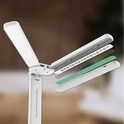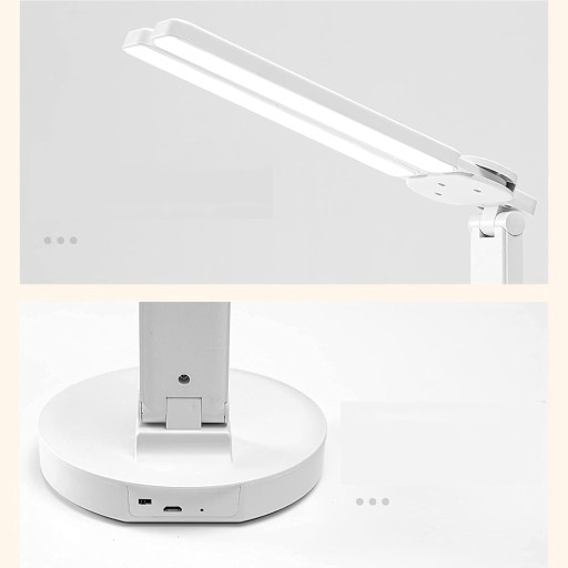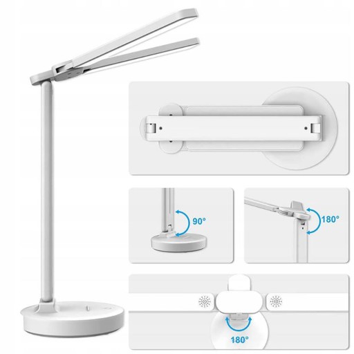 📙Nowatorska konstrukcja podwójnych głowic lamp: podstawa ABS, metalowy słup i podwójne głowice. Lewą i prawą głowicę można rozłożyć w linię prostą, a maksymalny kąt może sięgać 180 stopni.Głowicę można również odchylać w górę i w dół, co pozwala skutecznie redukować cienie po pisaniu.