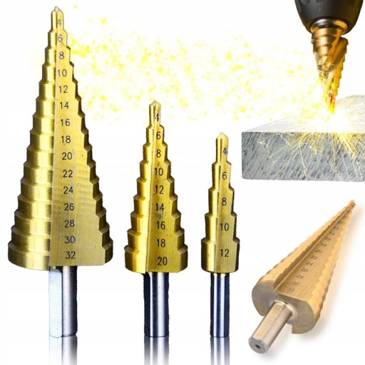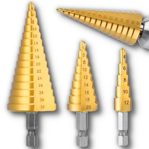 ✅ Zestaw 3 wierteł stopniowych choinkowych HSS ✅