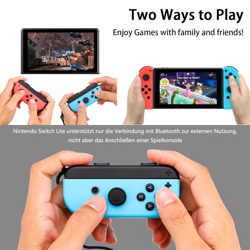 ● Zaktualizowany bezprzewodowy lewy i prawy kontroler można zastąpić kontrolerem Nintendo Switch (nieoryginalnym) i jest w pełni kompatybilny z konsolą Nintendo Switch/Switch OLED (Nintendo Switch Lite obsługuje tylko połączenie przez Bluetooth do użytku zewnętrznego, nie podłączając jednej konsoli do gier) . Wysokowydajna technologia bezprzewodowa zapewnia silny i niezawodny sygnał przeciwzakłóceniowy, doskonale rozwiązuje problem częstych przestojów i reakcji przycisków bez opóźnień i dryftu, zapewnia płynny i wygodny czas gry, idealny zamiennik kontrolera Switch.