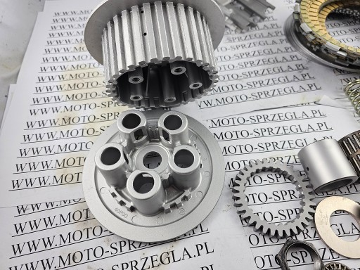 Nowe elementy które zostały zastosowane : Tarcze sprzegła , przekładki metalowe , łożsko kosza , tuleja , sprężyny docisku wzmocnione , 1x Podkładka dystansujaca x1 Podkładka nakretki , nakrętka .
