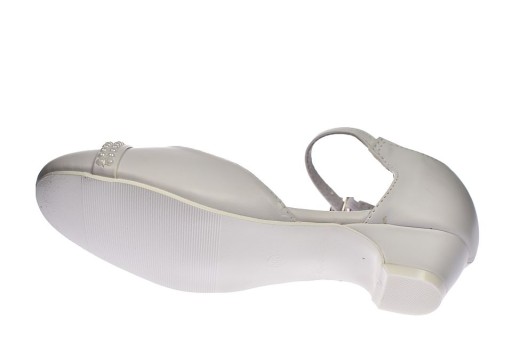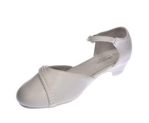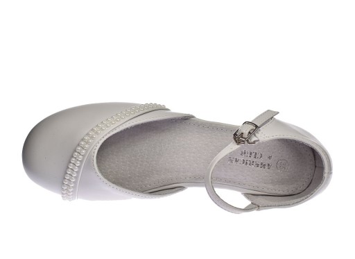 Buty komunijne białe balerinki dziewczęce białe na obcasie zapinane na pasek marki American Club