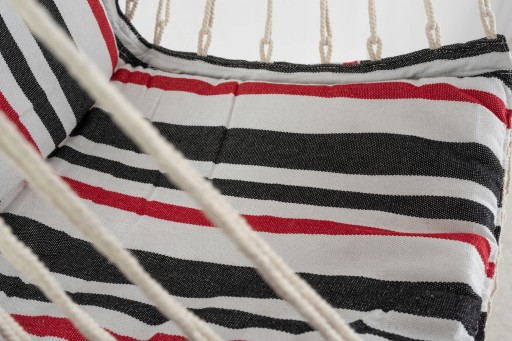 Wykonane z wytrzymałej bawełny zapewniającej przepuszczalność powietrza. Siedzisko zaprojektowano tak, by wygląd nieustająco wzbudzał zachwyt ale przede wszystkim zapewniał wysoki komfort użytkowania. Hamak można prać w pralce zgodnie z instrukcją.