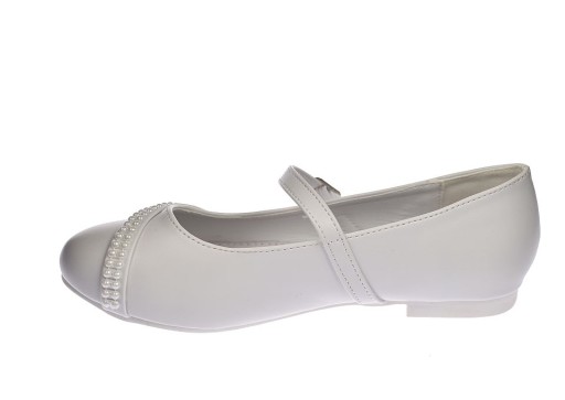 Buty komunijne balerinki dziewczęce białe na obcasie z paskiem marki American Club