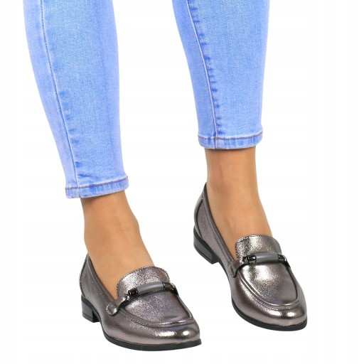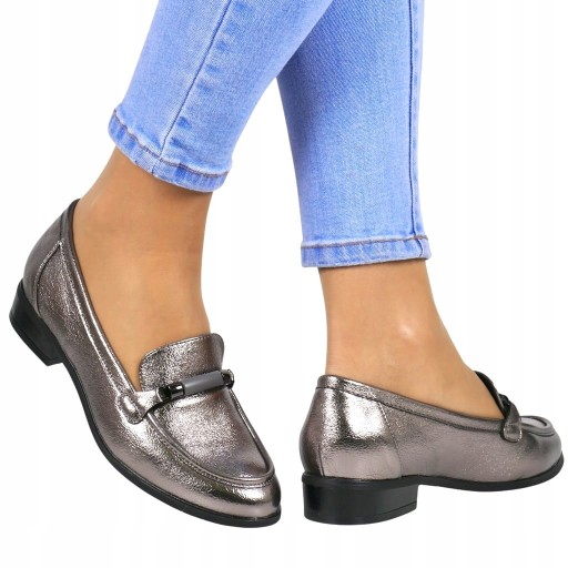 KLASYCZNE PÓŁBUTY PŁASKIE WSUWANE BARDZO MIĘKKIE W NOWYM KOLORZE SREBRA PEWTER
