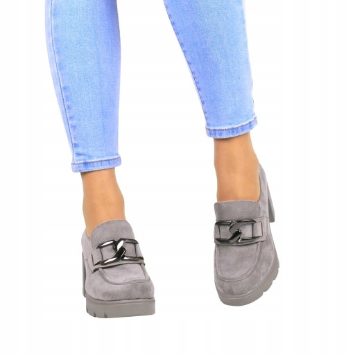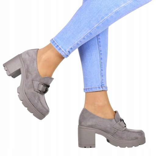 WYGODNE PÓŁBUTY NA OBCASIE MOKASYNY NA SŁUPKU NOWY KOLOR SZARE ZAMSZOWE LEKKIE